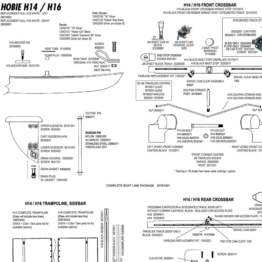 The Hobie 14 is a classic and versatile catamaran sailboat known for its simplicity, speed, and agility. West Coast Sailing has all the resources you need to rig, find replacement parts, and enjoy sailing your Hobie 14.