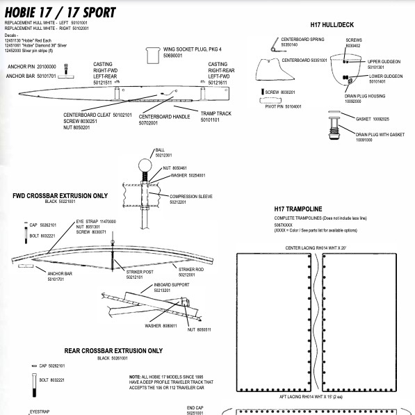 The Hobie 17 sailboat is a high-performance catamaran celebrated for its speed and agility, featuring a sleek design, trapeze system, and asymmetrical hulls that combine to deliver an exhilarating sailing experience. West Coast Sailing has all the resources you need to rig, find replacement parts, and enjoy sailing your Hobie 17.